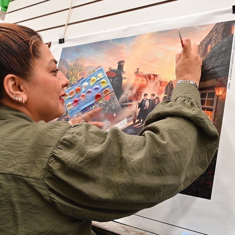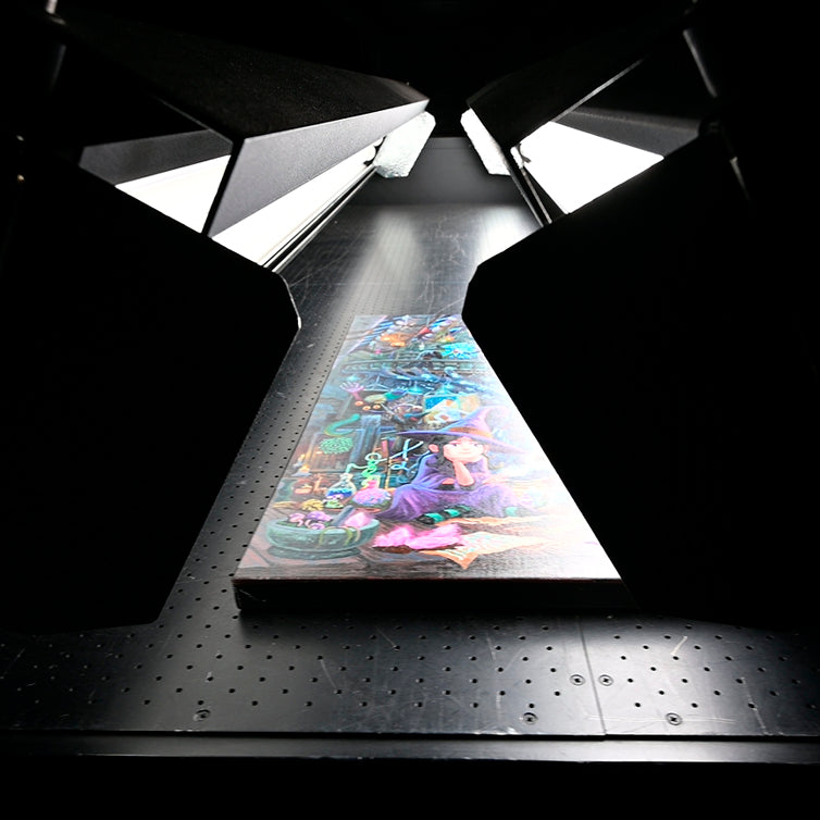 The entire process begins with “the capture”. Meaning that an absolute color correct digital file of the original art must be photographed…and this is no normal photograph. Each painting is captured using a staggeringly high resolution camera from which our master colorists painstakingly pour over every square centimeter, calibrating the original art with the file and then the file with printer. Days, sometimes weeks, are spent reviewing the smallest detail of the image until the result is perfect.