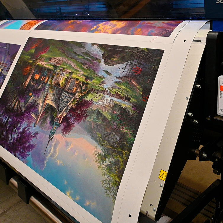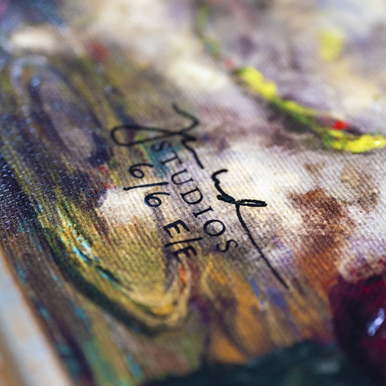 So much of what goes into the final reproduction depends on the quality and consistency of the canvas. We only use acid free, heavy cotton canvas, which is not only durable, but will not degrade over time. The surface has been specially prepared to accept and hold the inks, allowing them to radiate the brilliant color of the work to maximum effect.