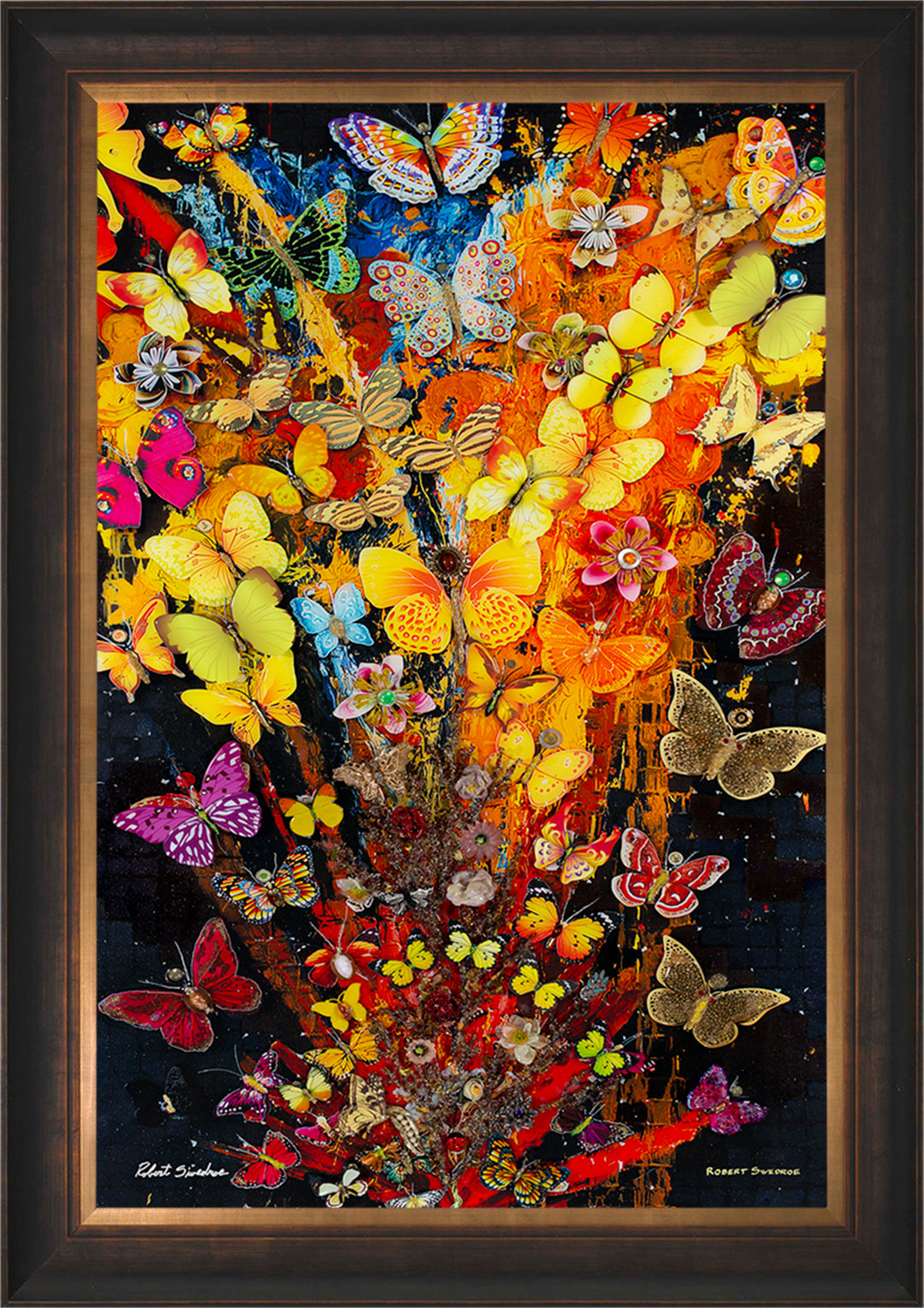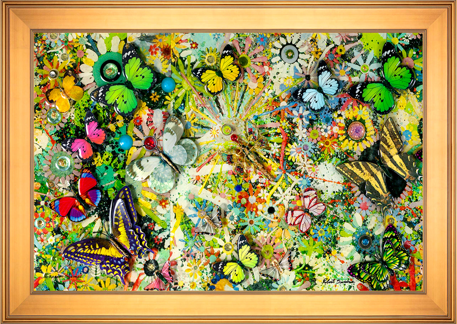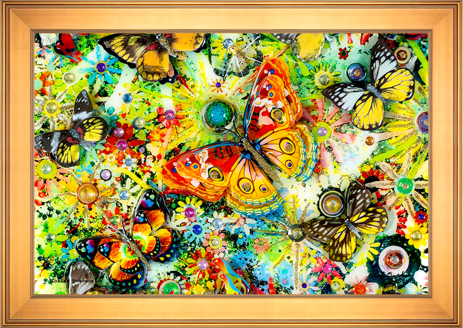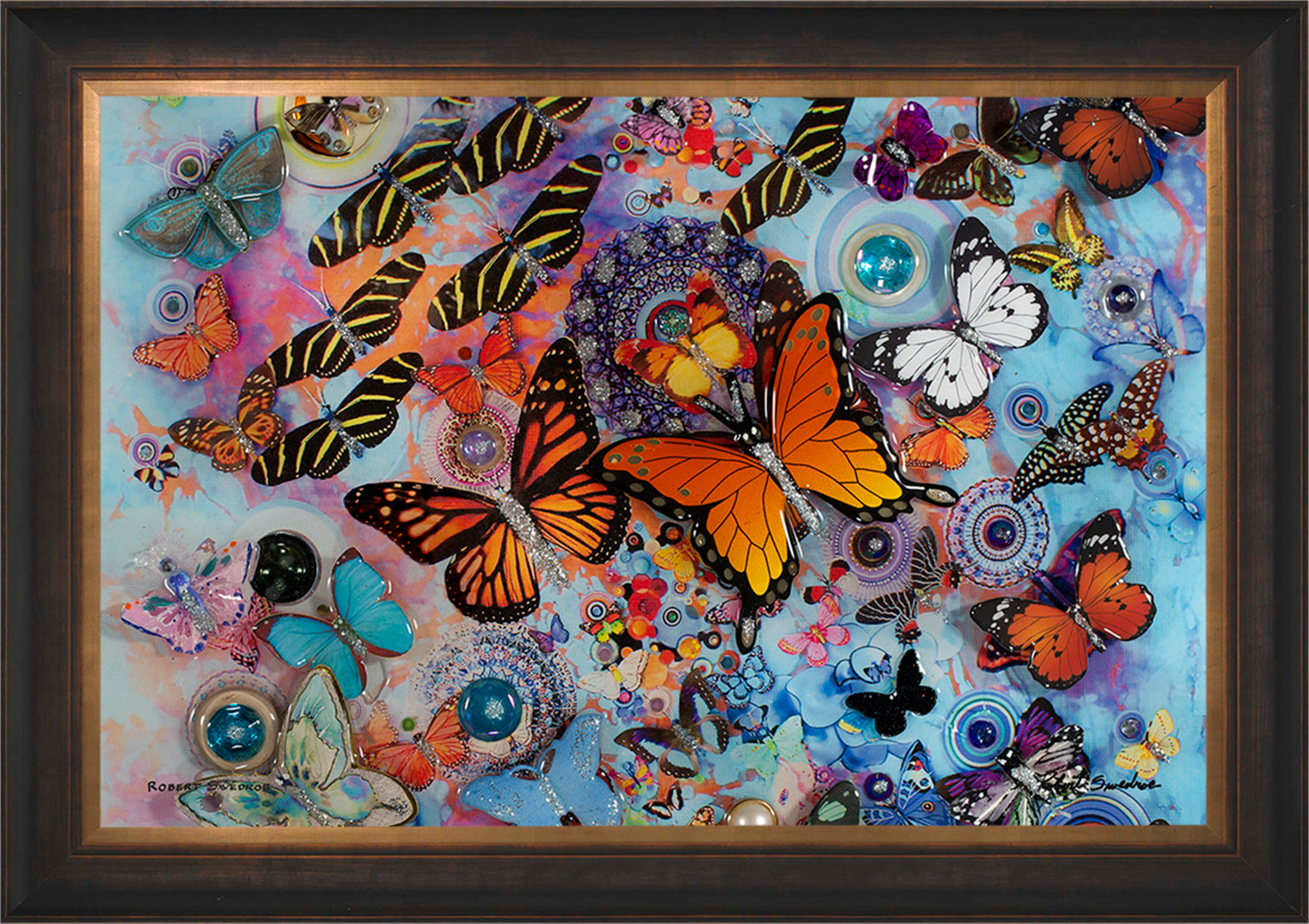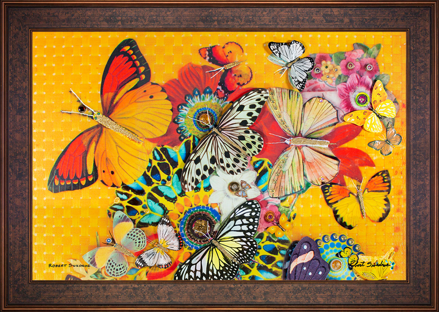When it comes to my approach to collage art, I tend to take a surreal approach. I find it more satisfying to let the viewer interpret the piece for themselves, rather than telling them what they should see. Take, for instance, my work, "Flight of the Butterflies." This piece was inspired by the Monarch butterflies that often hover around my pool area. Using a mixture of paper and glass butterflies with jewel accents, I created a vibrant and captivating mixed-media collage that perfectly captures the fluttering beauty of these delicate creatures. Each time you look at it, you may discover something new, as if the butterflies are taking flight right before your eyes.